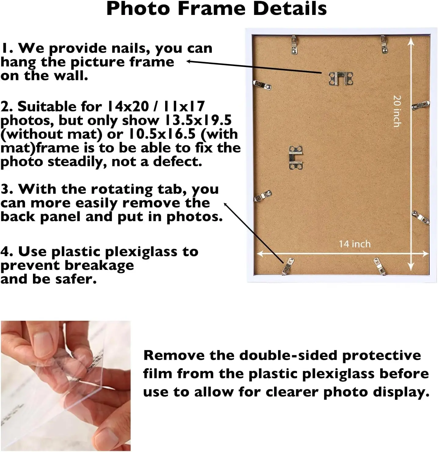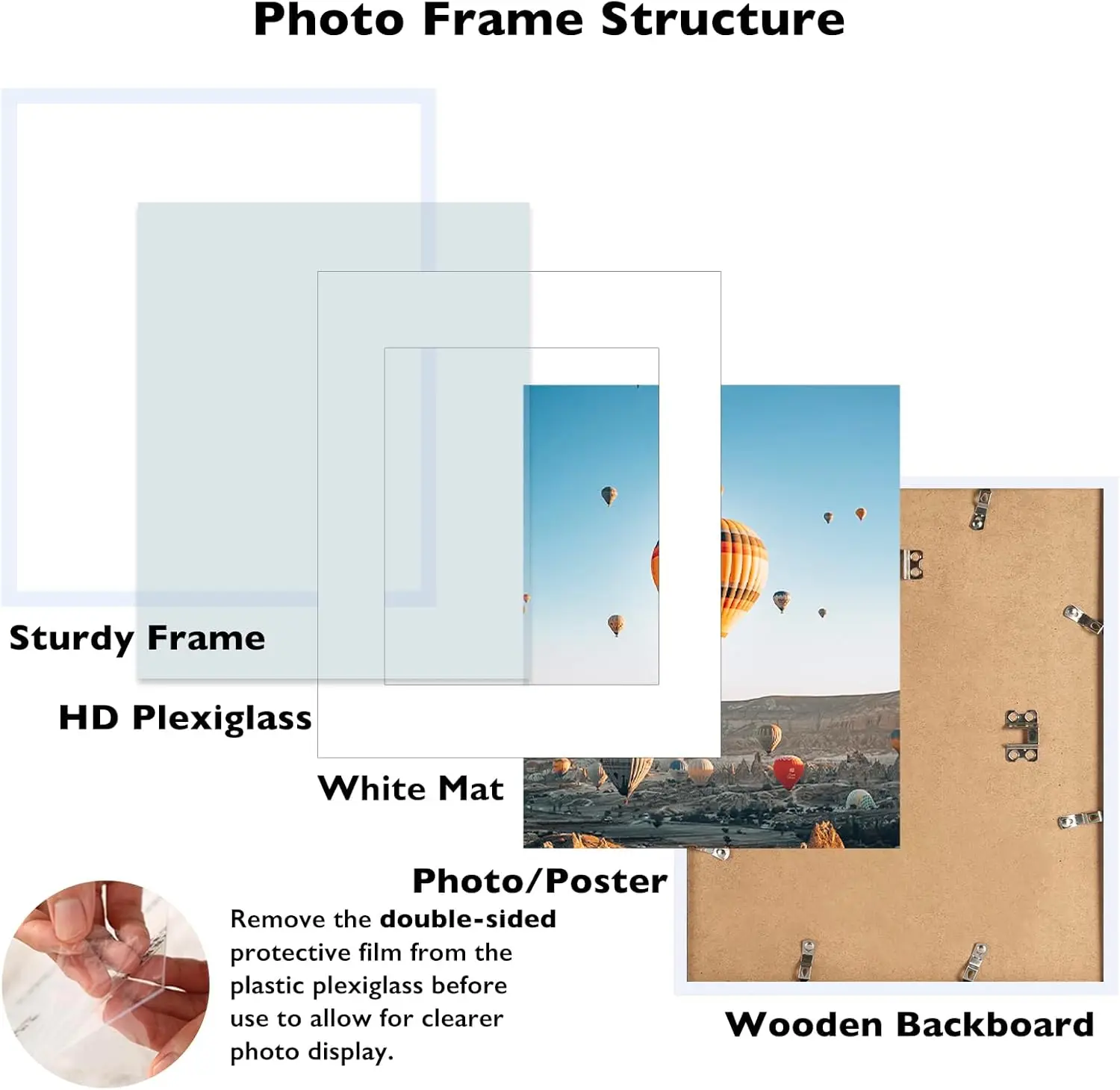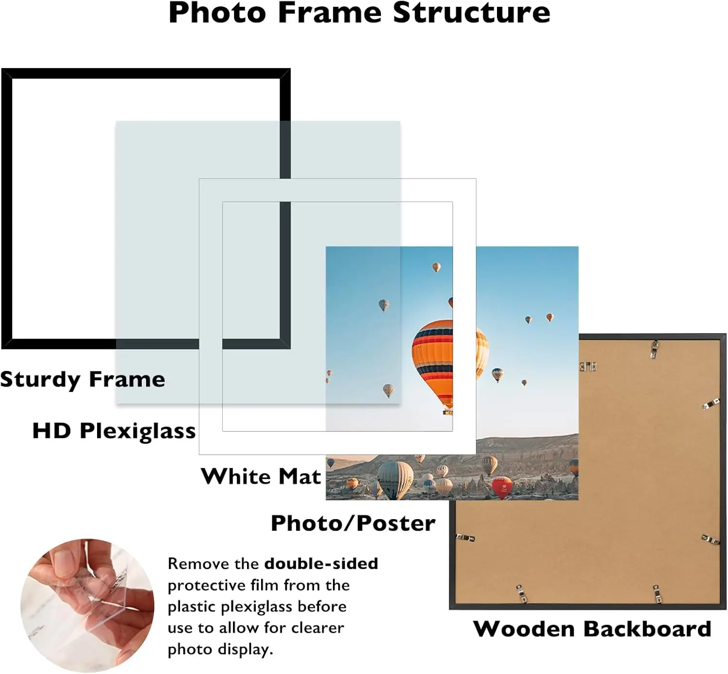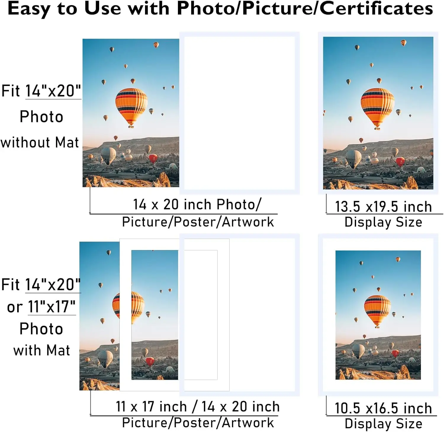 11x14 Picture Frame with 8x10 Mat, Display Photo 8x10 with Mat or 11 x 14 Without Mat, Wall Hanging Large Frame with Shatter