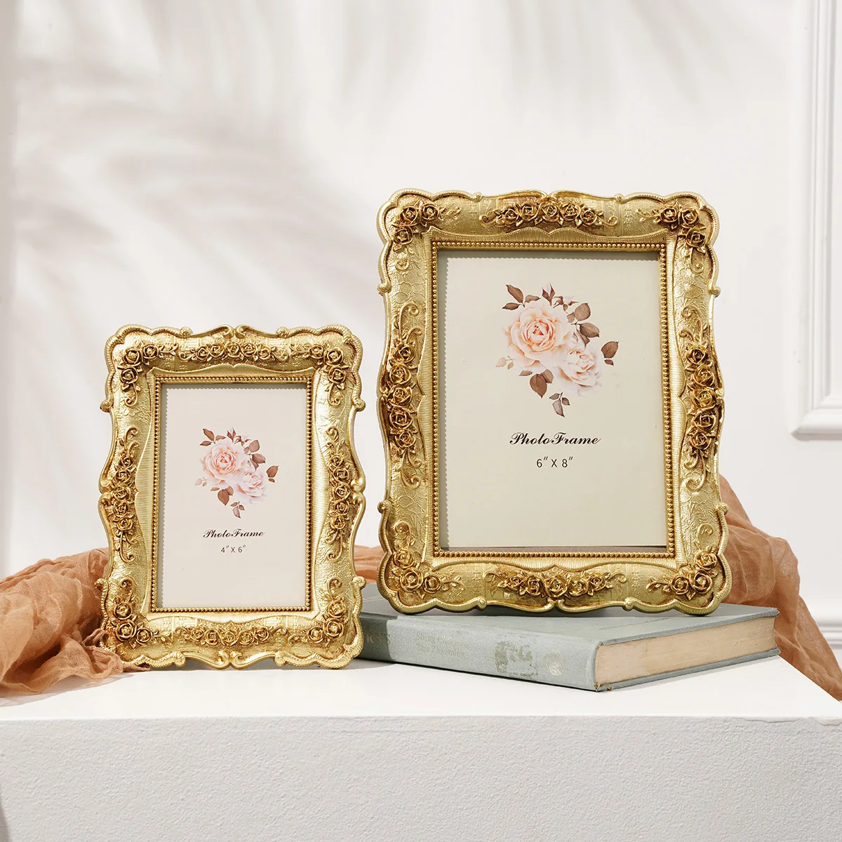 1PC, European-style rectangular golden rose relief decorative photo frame