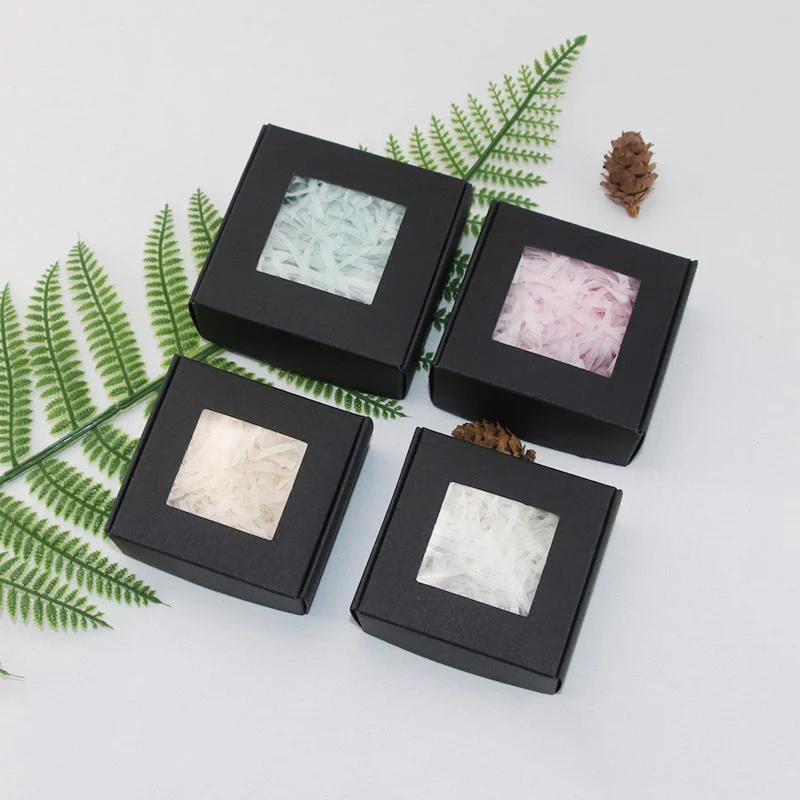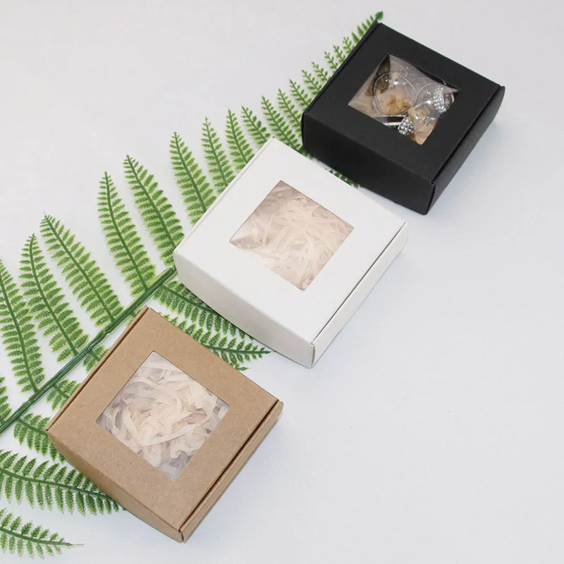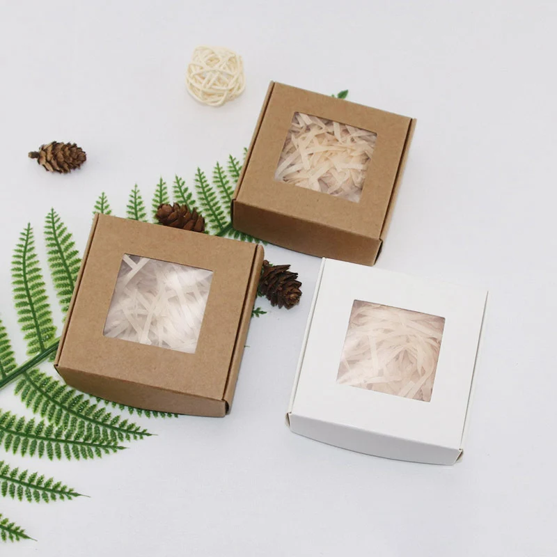 4pcs New PVC Window Kraft Paper Gift Box Biscuit Handmade Soap Jewelry Gift Packaging Party Supplies Gift Box