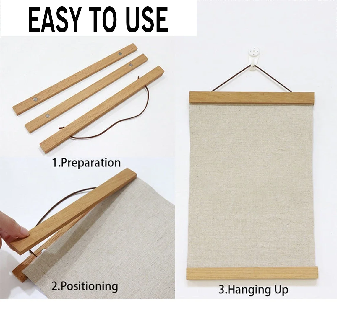60cm 70cm 80cm 90cm Magnetic Poster Hanger Teak Pine Wood Painting Frame 5 Colors Wood Photo Frame Black White Canvas Frame