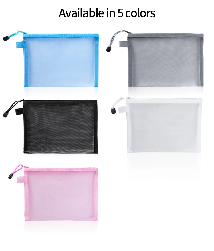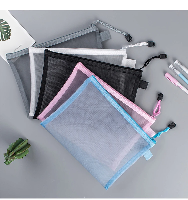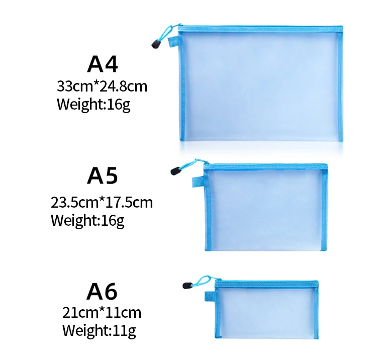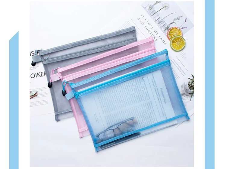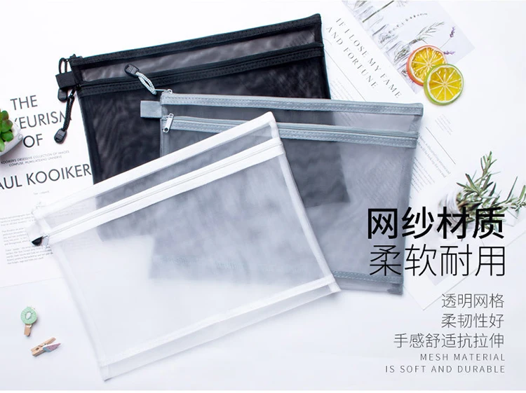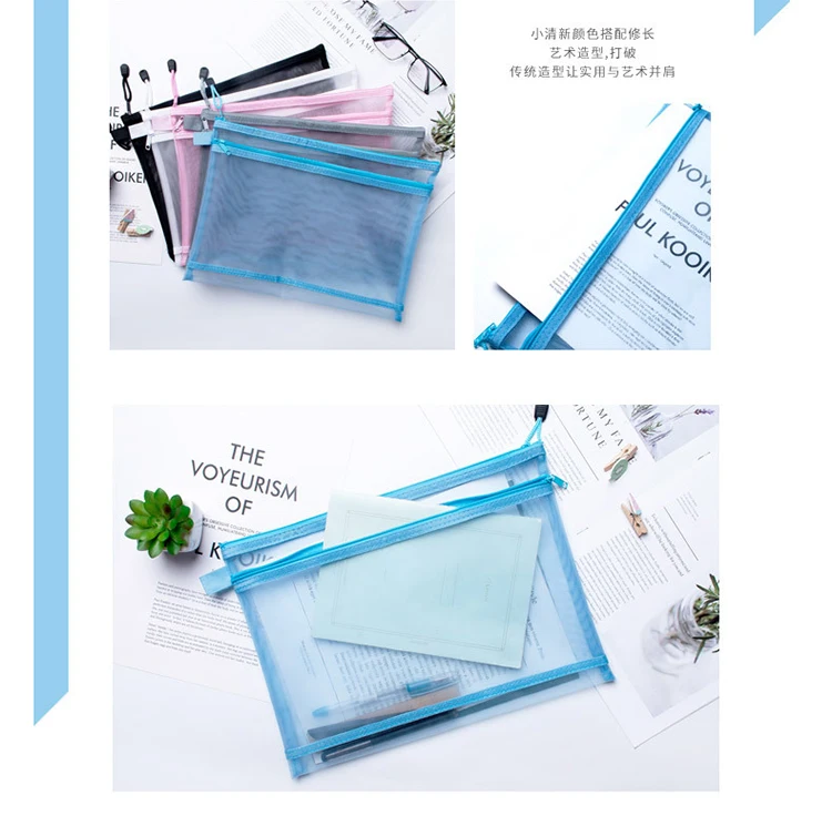 A4 A5 A6 Portable Double-layer Mesh Zipper File Bag Transparent Student Test Paper Data Storage Bag Office Files Stationery