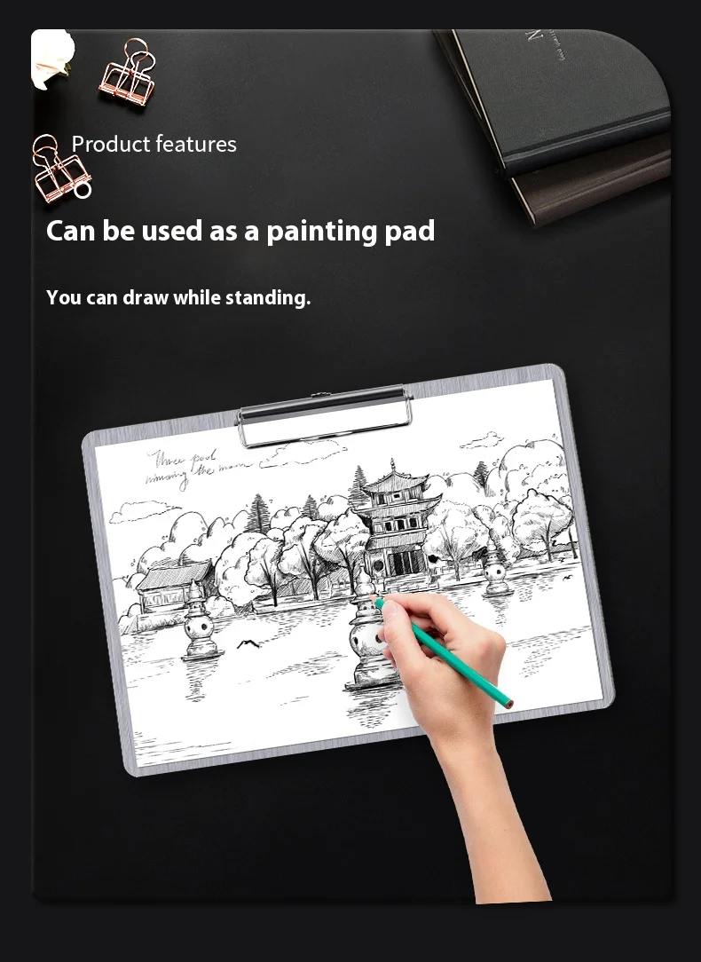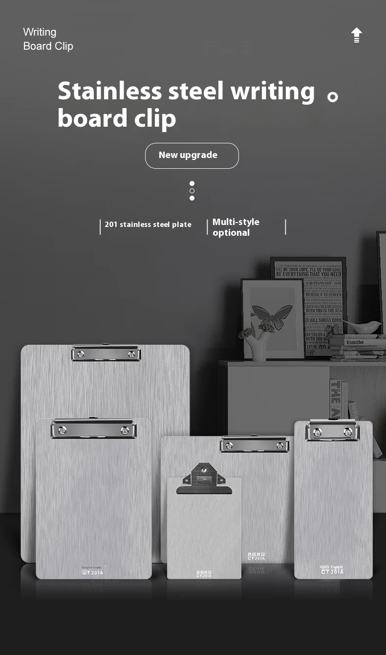 Clip Board Stainless Steel Writing Pad Folder Paper Office Supplies Organizer Clipboard Storage Box Document Pad Paper Holder