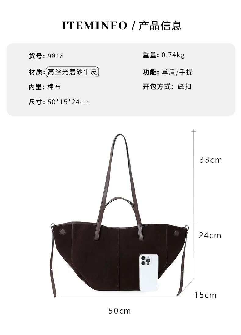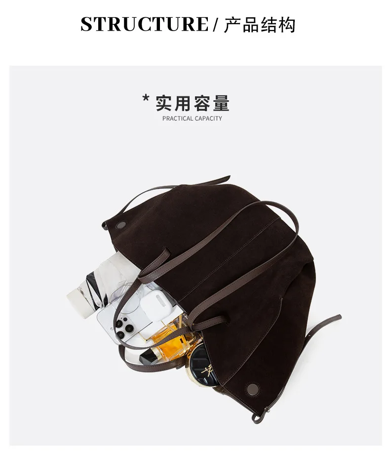 Leather women's bag with high-end design, tote bag for commuting, large capacity handheld women's shoulder bag