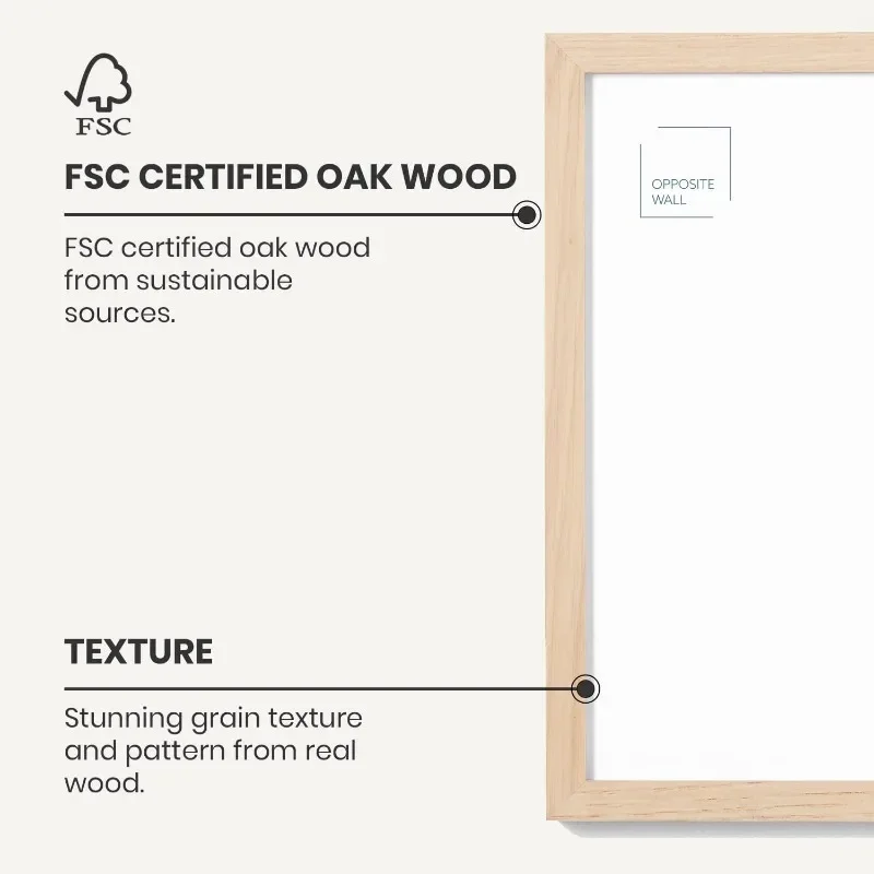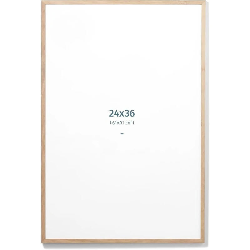 - SPECS & INCLUSIONS - 24x36 poster frame (inches), 61x91 cm. Natural solid oak wood, 0.6 in wide, 0.8 in deep. Posters & hanging accessories are not included. Robust packaging in corrugated boxes with corner protection.