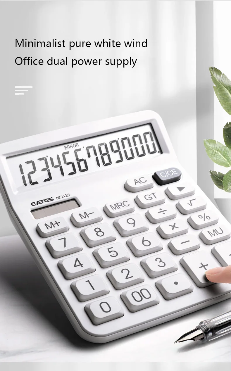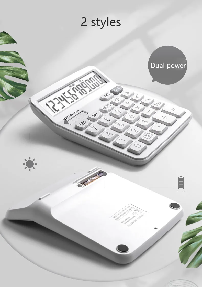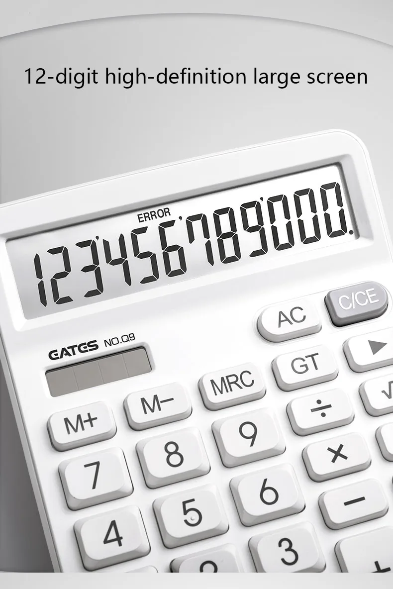 Simple Business Calculator 12-digit Display Large Screen Dual Power Supply Calculator Student Accounting Desktop Calculator