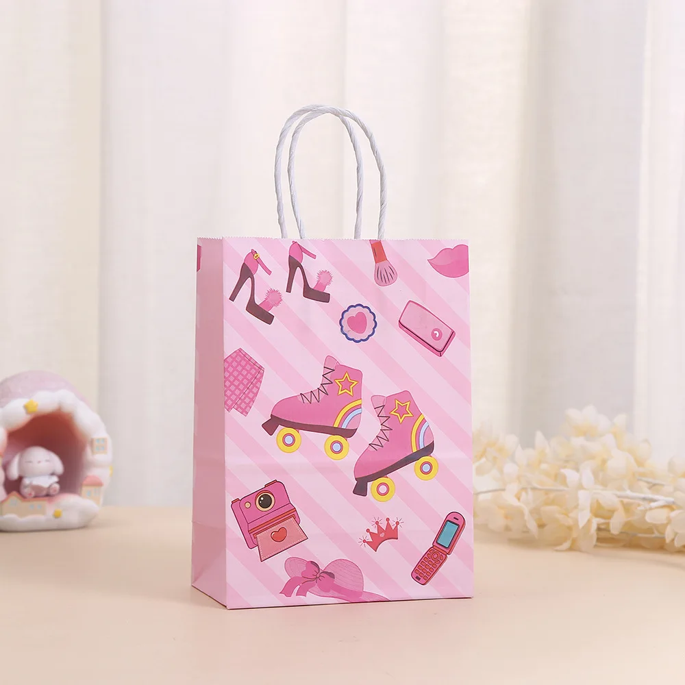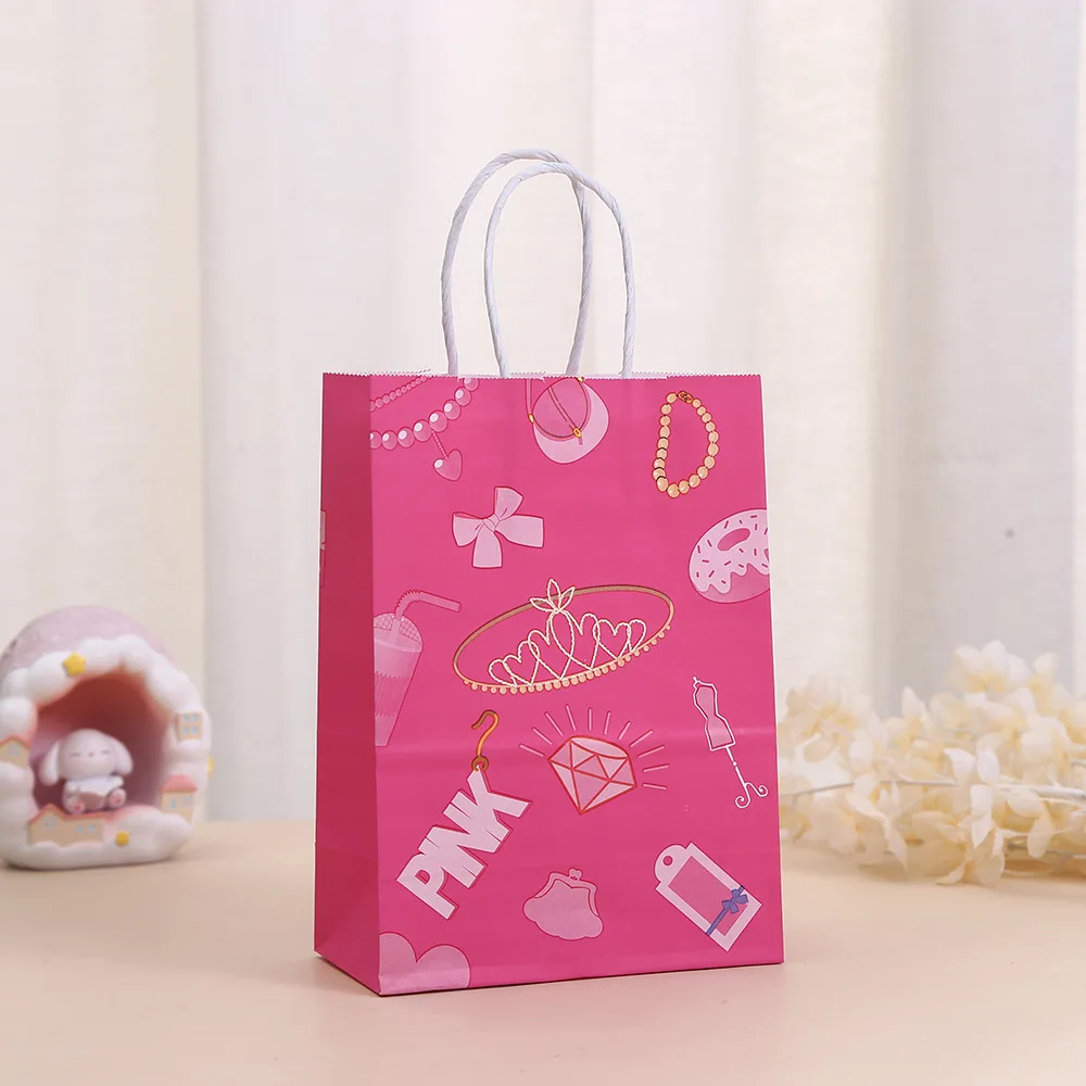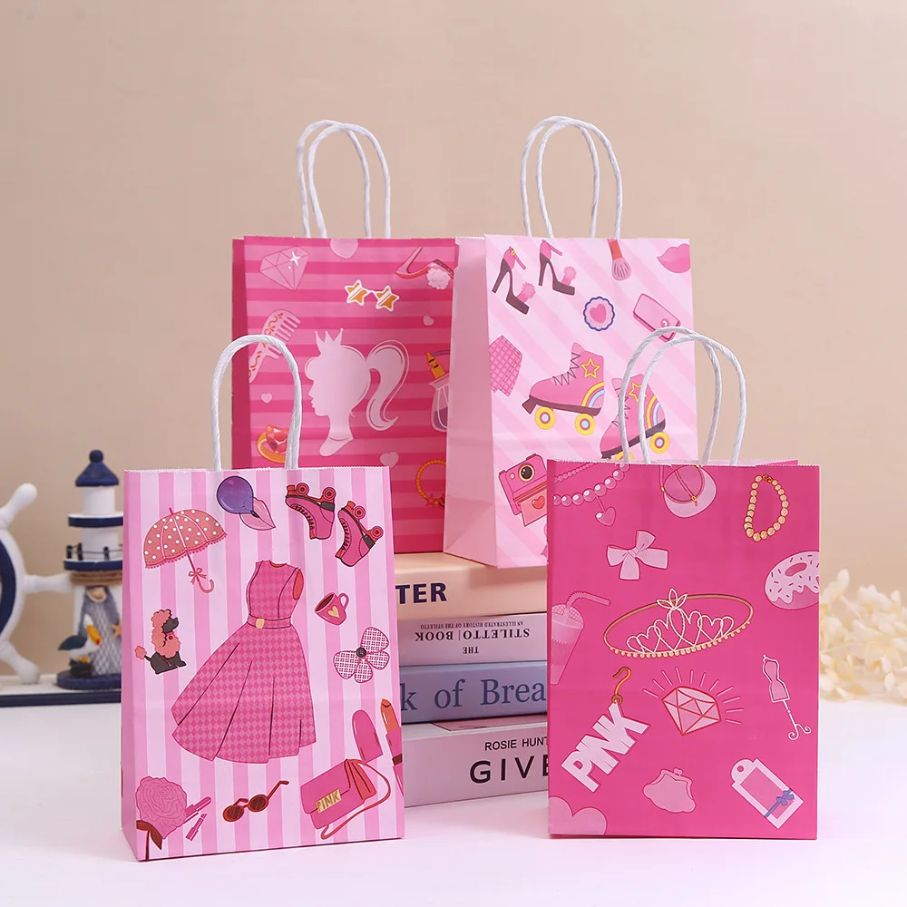 StoBag, Pink Doll Gift Wrapping Kraft Paper Tote Bag, for Birthday, Packing Candy Snack, Decoration Supplies,Reusable,12/30pcs