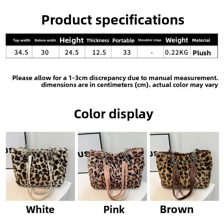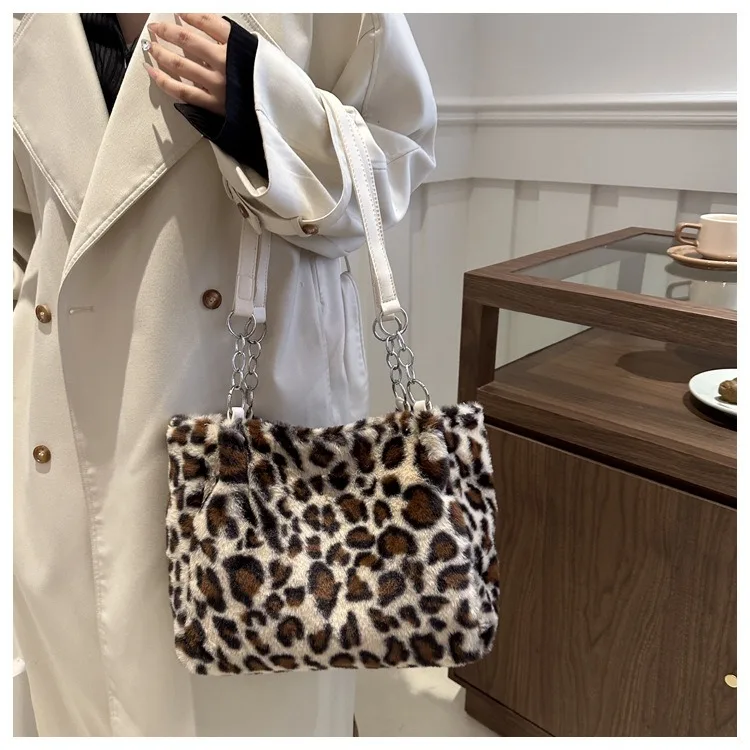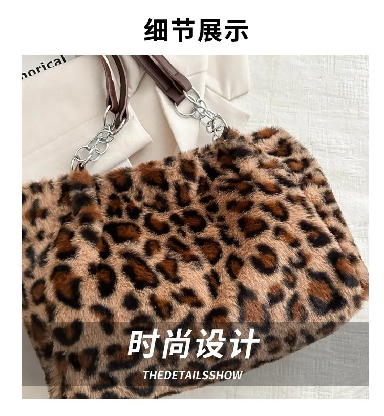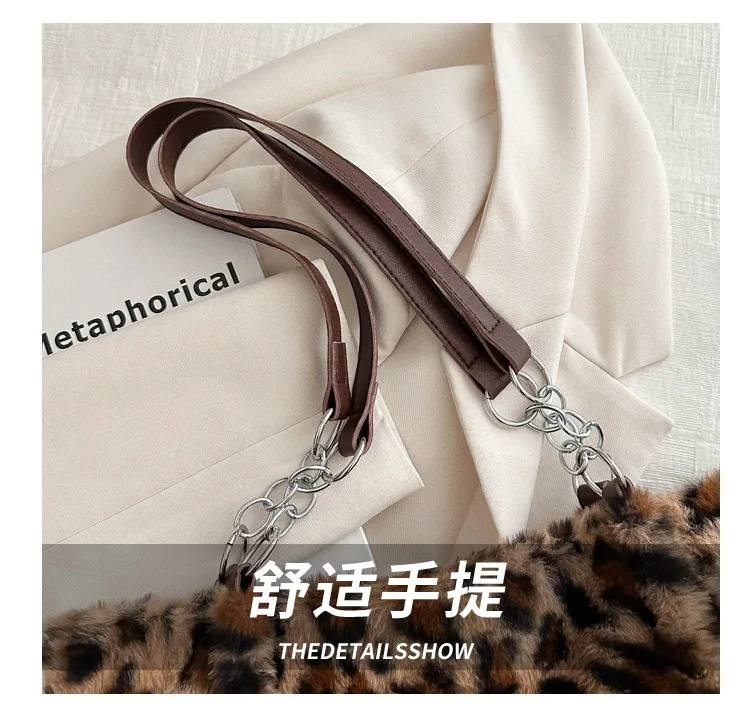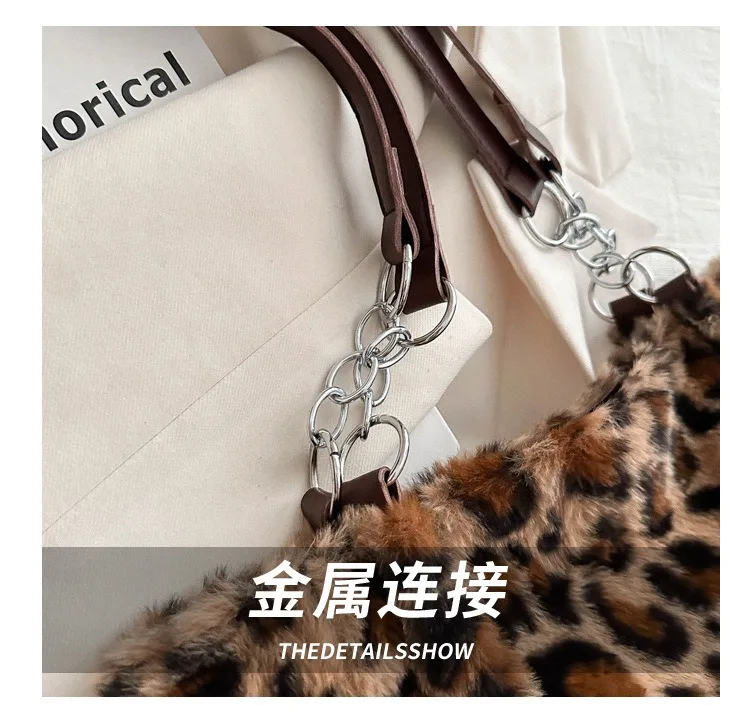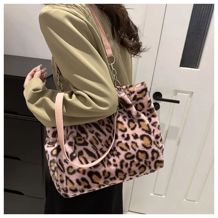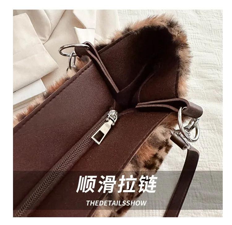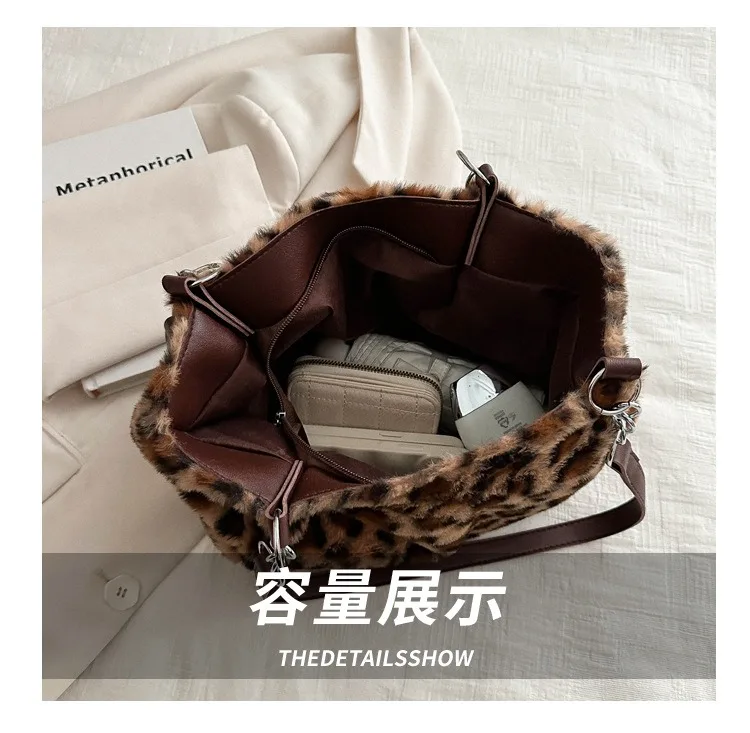 Versatile simple large-capacity bag 2025 new autumn and winter tide fashion leopard print plush tote bag atmospheric fluff shoul